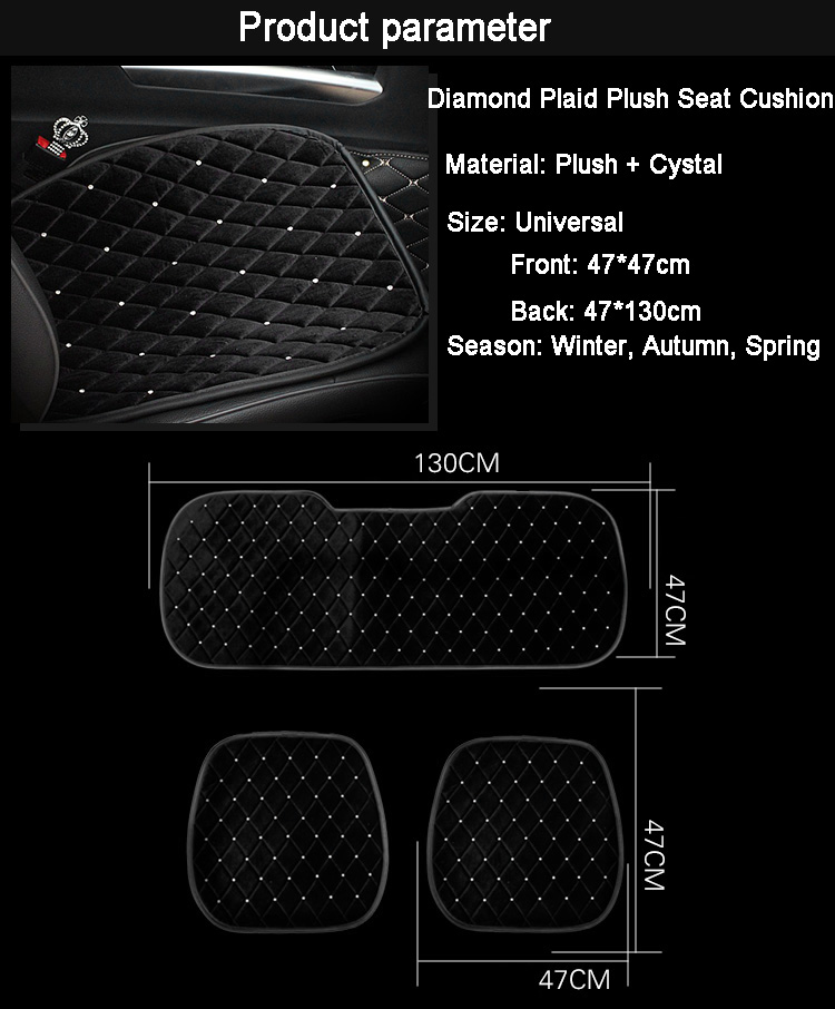 | Winter Diamond Plush Car Front Seat Cushion Woman Universal Automobile Pads 1pcs - Black |